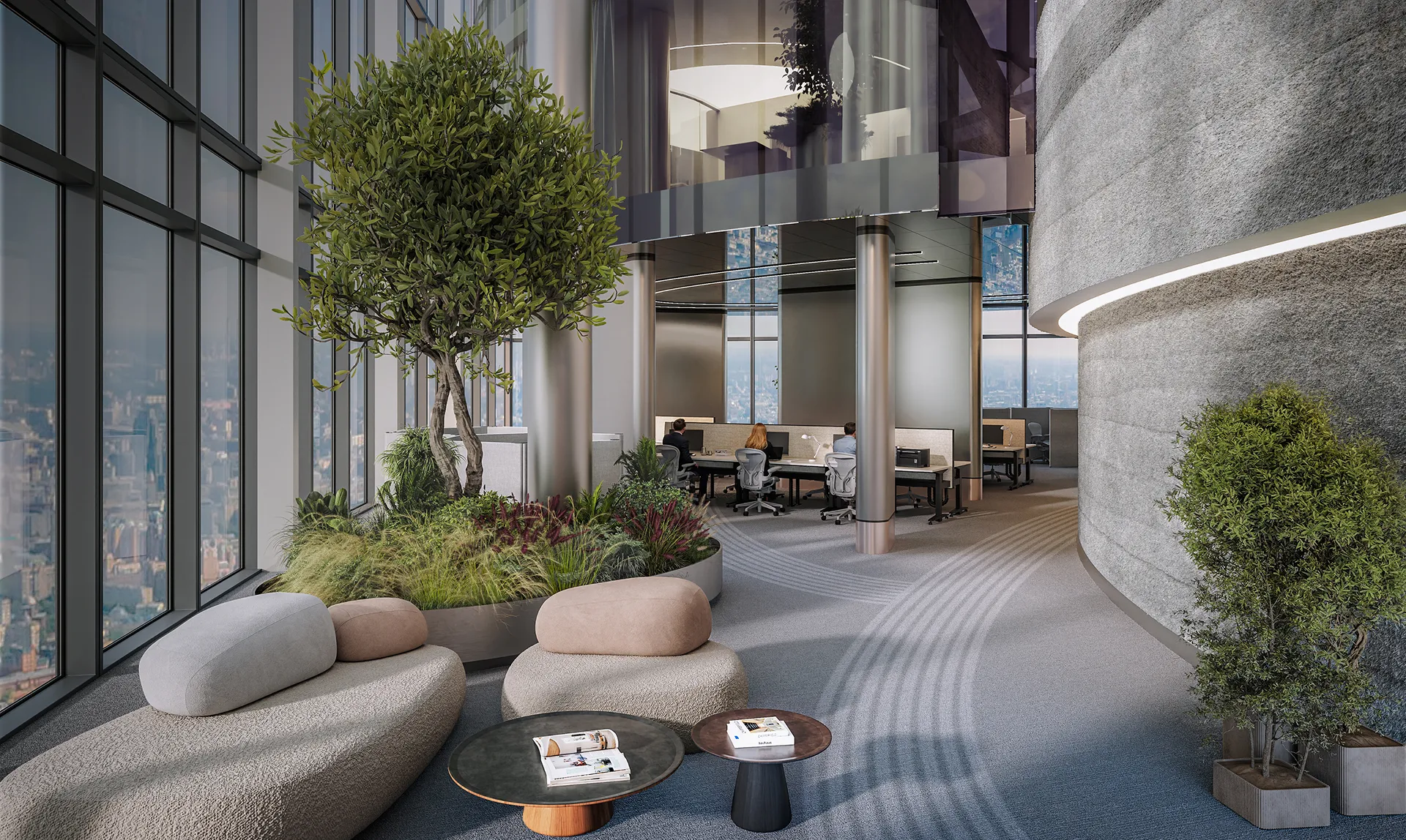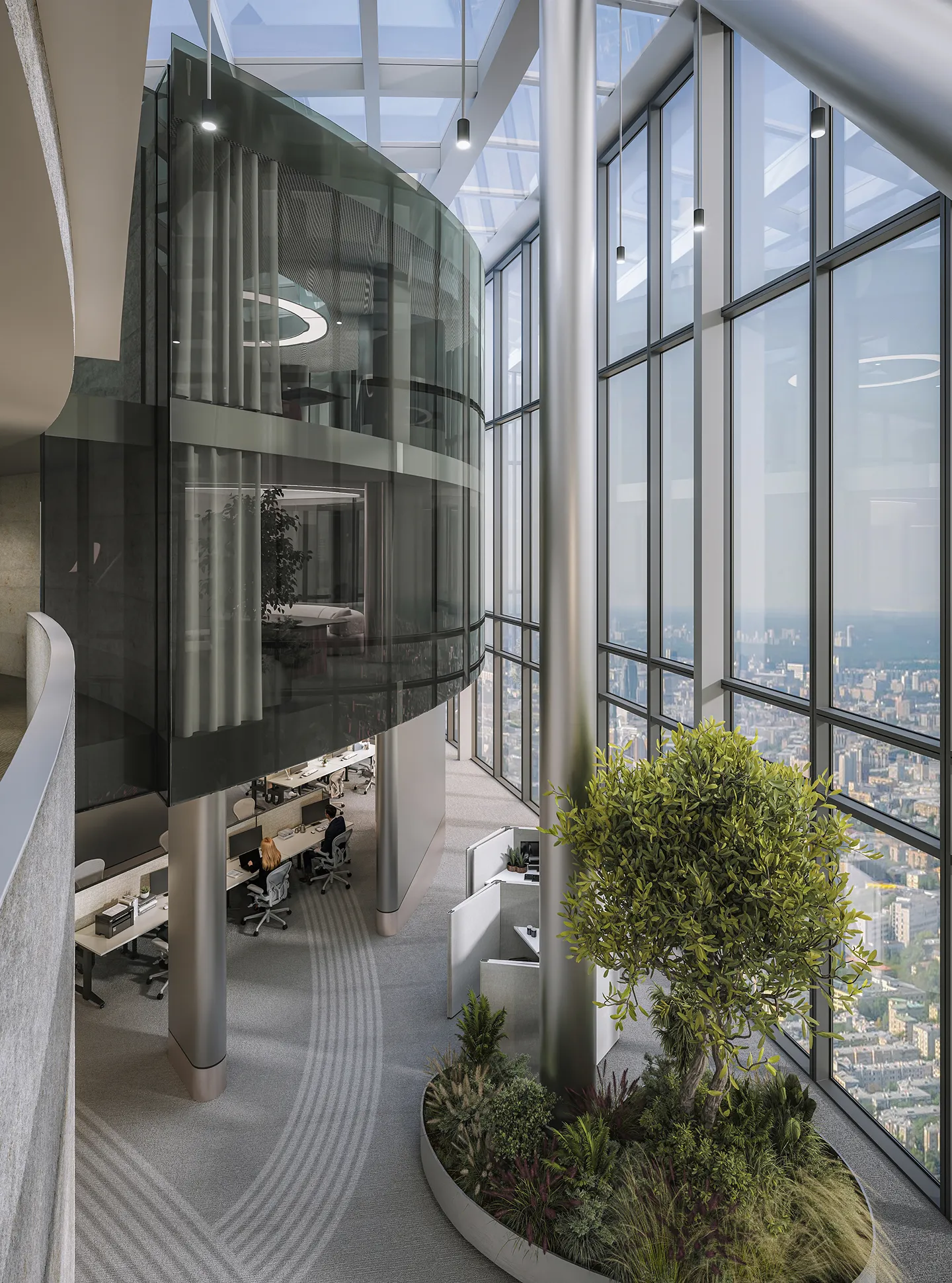 два панорамных лифта и живые деревья объединяют уровни в единую экосистему. Это сад на высоте облаков, где технологии и природа работают на ваше вдохновение.