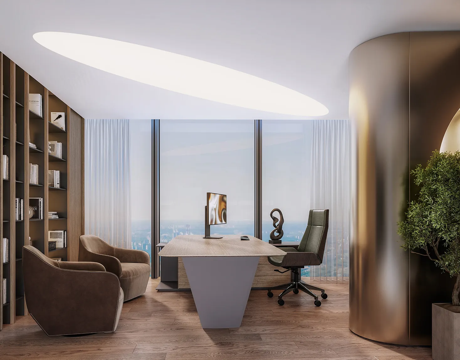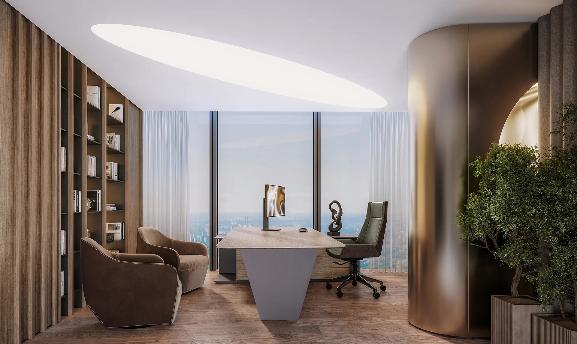 Высшая точка. Абсолютная доминанта. Два VvIP-кабинета и представительские зоны для первых лиц. Здесь нет места для компромиссов. Только вы, город у ваших ног и безграничный масштаб вашего мышления.