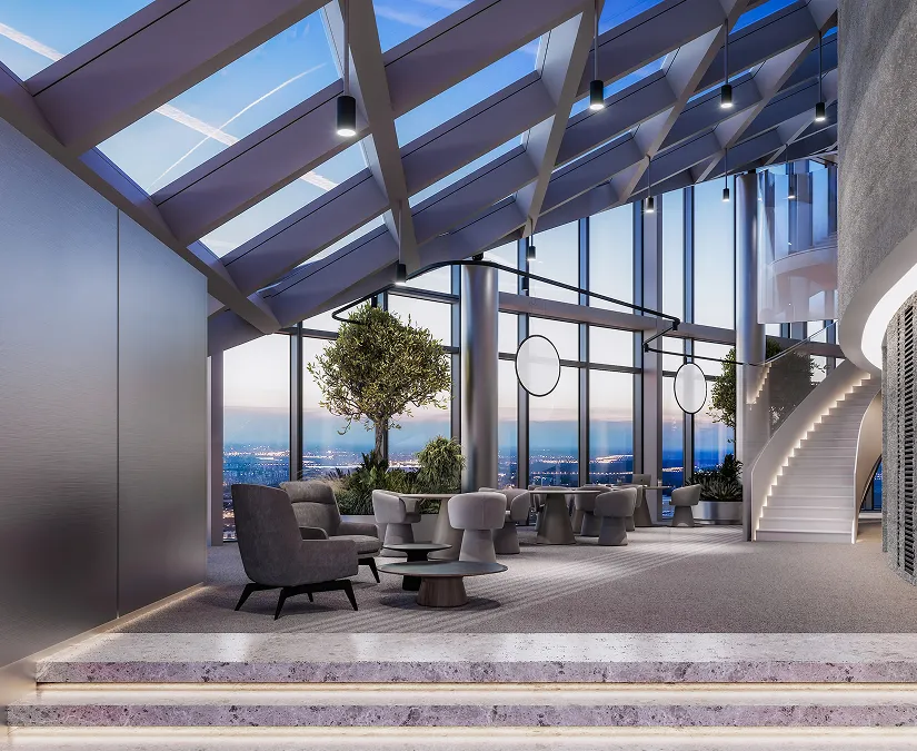 Приватное клубное лобби и персональная группа лифтов обеспечивают конфиденциальность на пути к вершине. Высокоскоростные лифты, доступные только резидентам верхних уровней, доставляют вас на 95 этаж за считанные секунды, превращая подъем в стремительный взлет над городом.