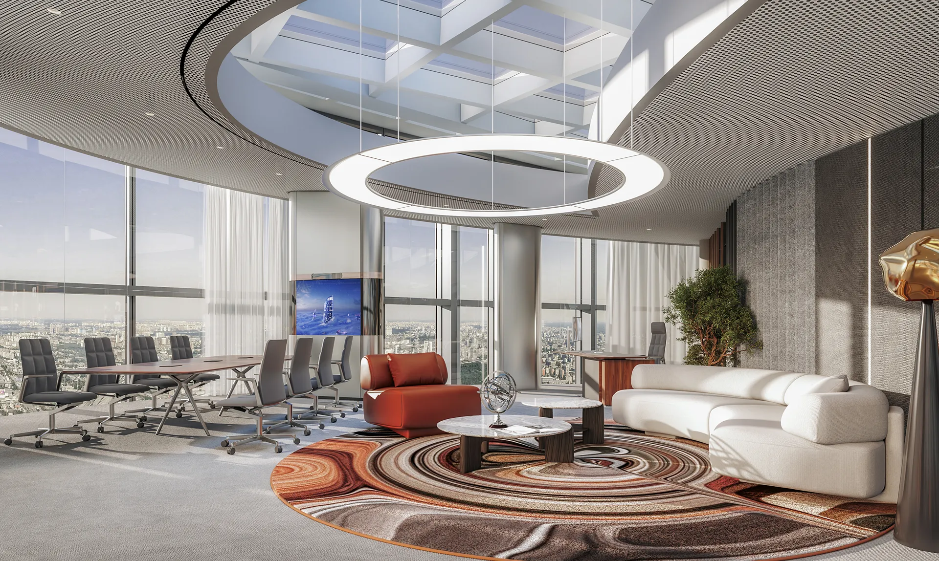 Все рабочие сценарии в одном роскошном футляре: офисный пентхаус Башни Федерация представляет собой продуманное до мельчайших деталей пространство для бизнеса.
